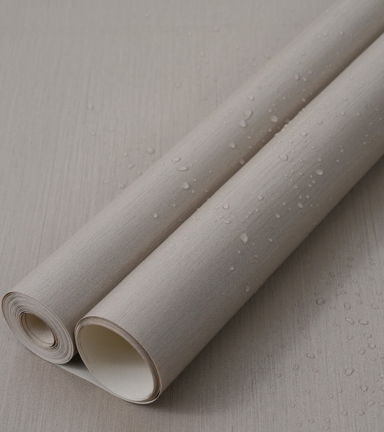 This beige metallic wallpaper is a sophisticated and elegant choice