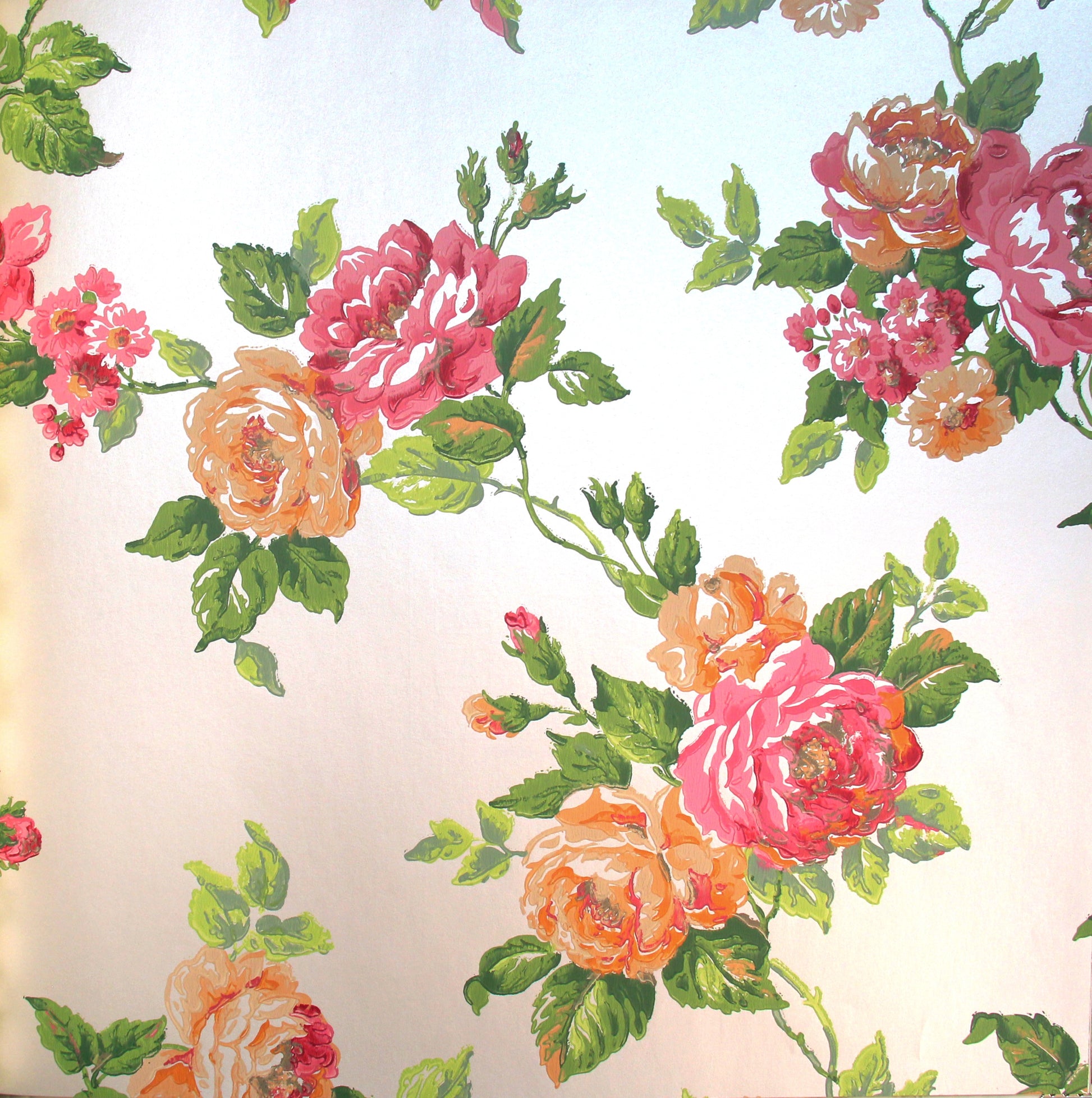 Elevate the decor of your space with the beautiful bunch of orange and pink flowers featured on this white wallpaper. Its designer and luxurious appearance instantly adds a touch of sophistication to any room. Combine it with plain color walls for an elevated look that complements your interior decor. The wallpaper pairs perfectly with deep-colored furniture and upholstery, creating a cohesive and elegant ambiance. Its beauty and charm make it a perfect choice for bedrooms, kitchens, and drawing rooms, adding a stylish and welcoming touch to your home.