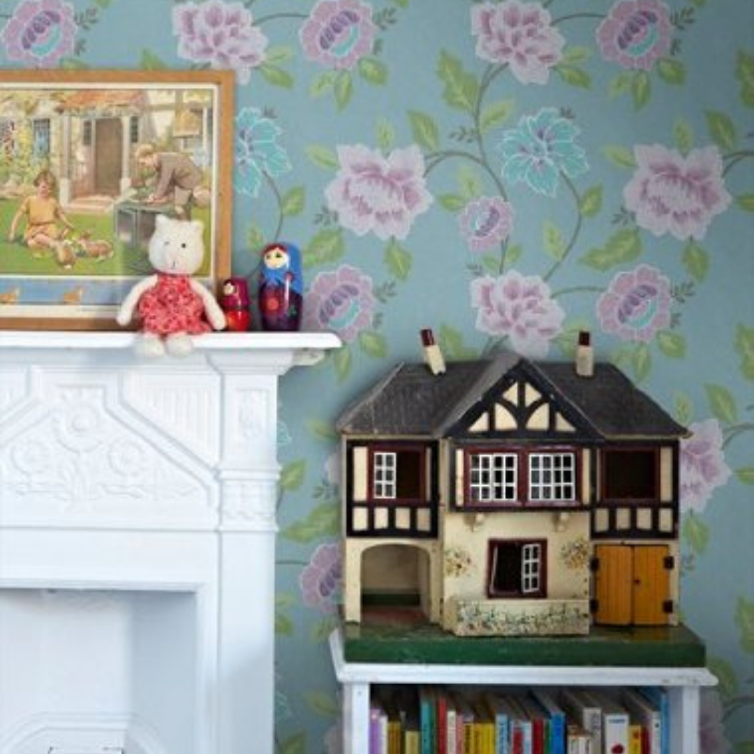 This powder blue wallpaper with its purple and green floral embellishments will shine through best with tan or beige monotone furniture. An earthy wallpaper, its a definite head turner and makes the dining and living room areas feel just like your garden outside.