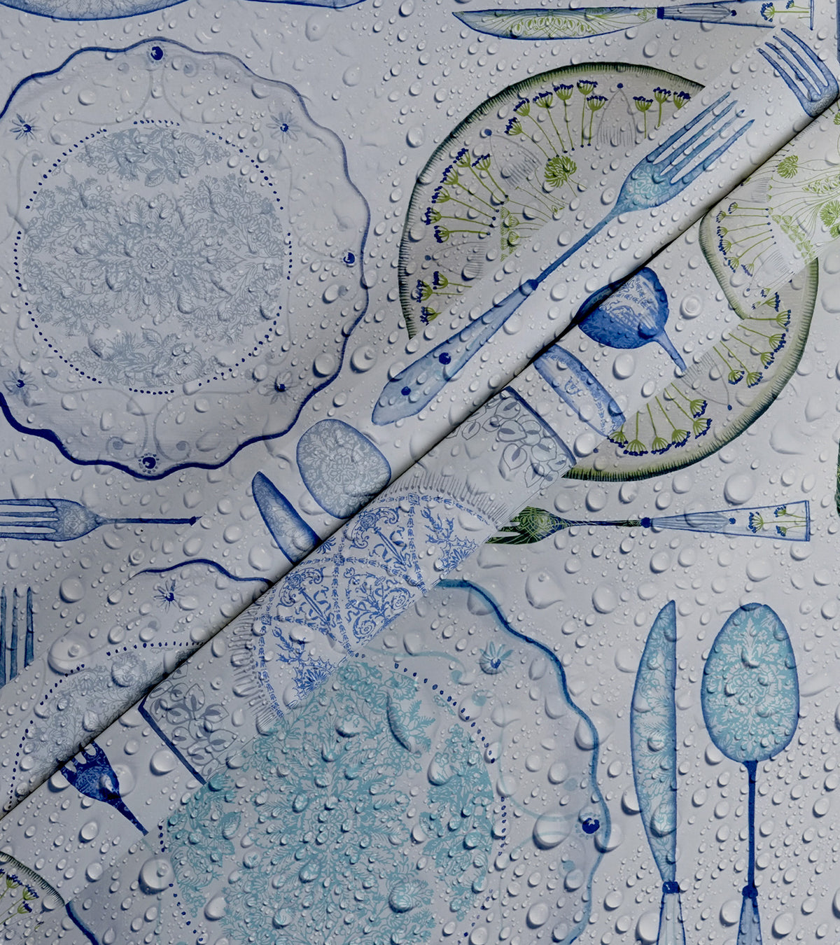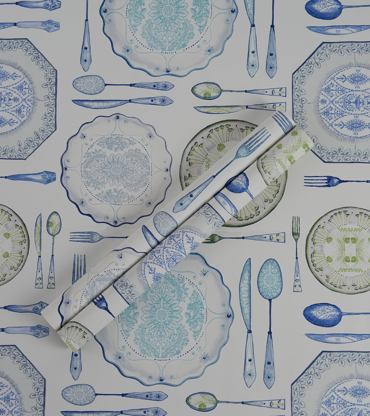 American Classic Blue Green Cutlery Wallpaper 330804