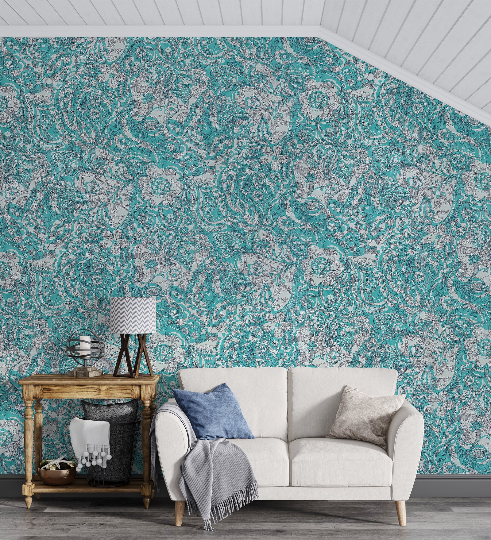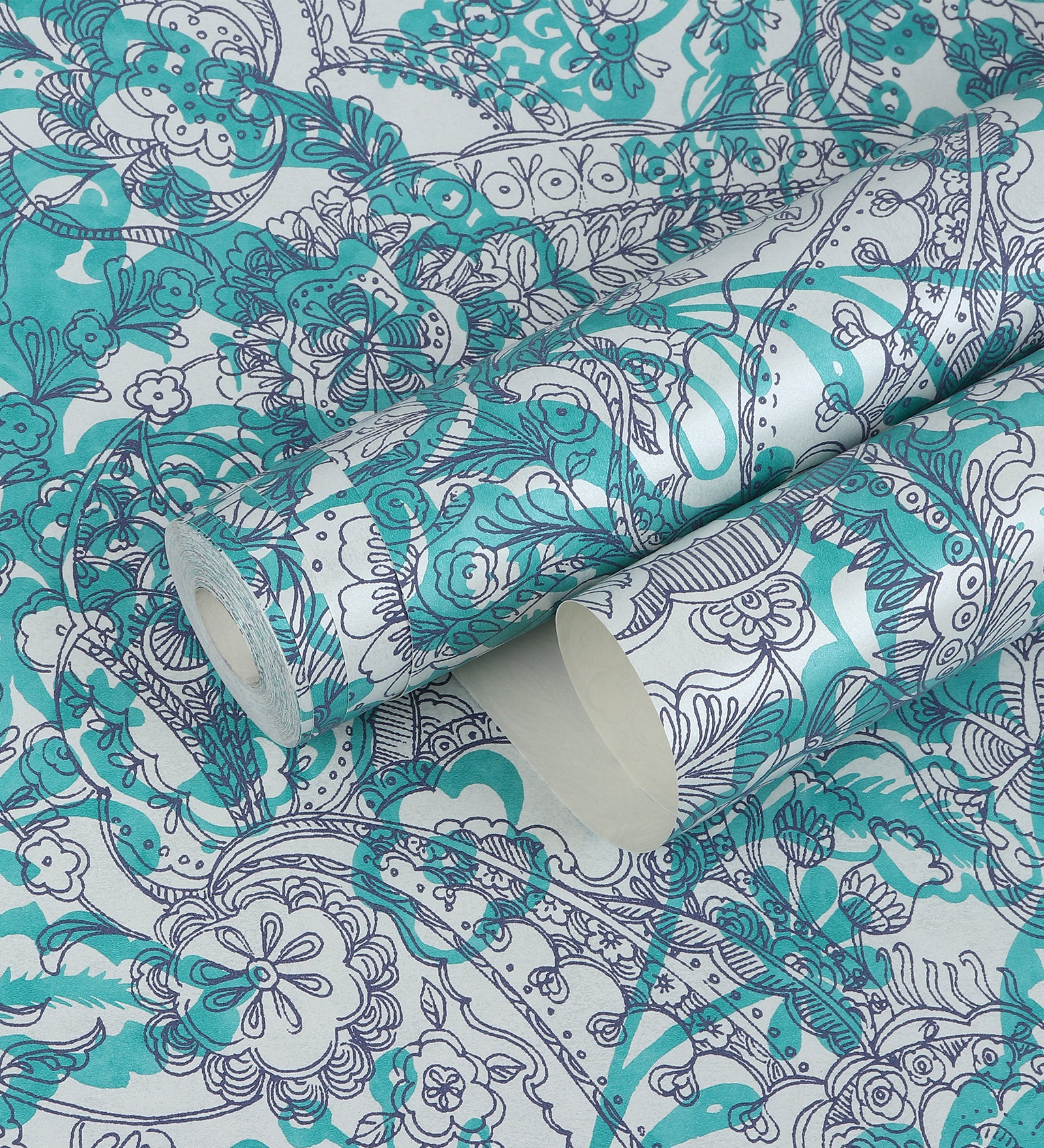 Raval Greenish Blue Floral Design Wallpaper 341520