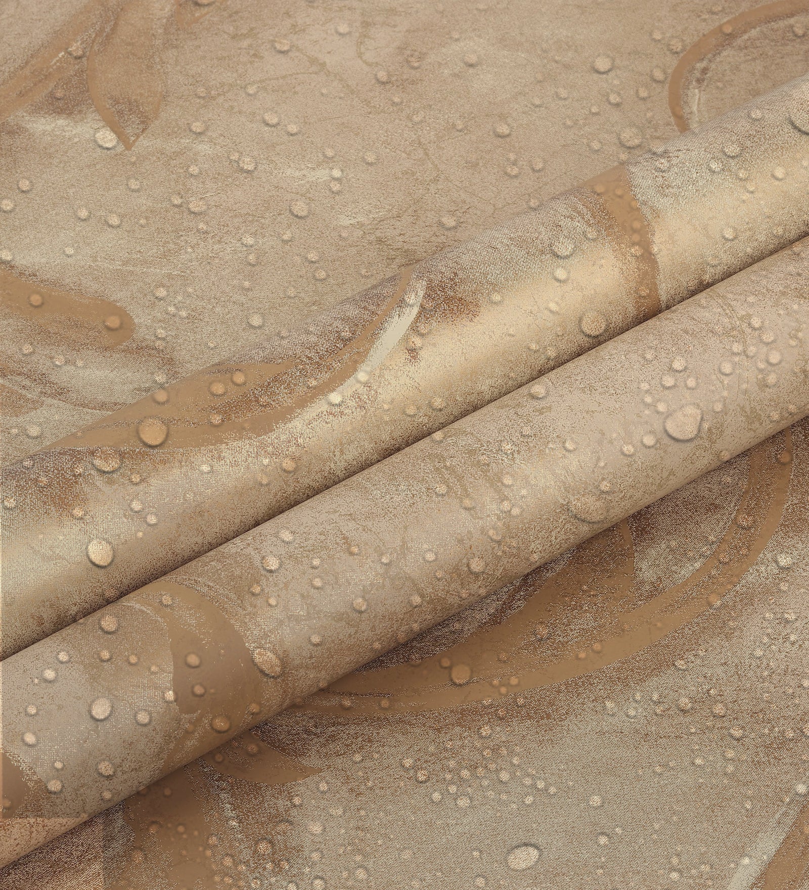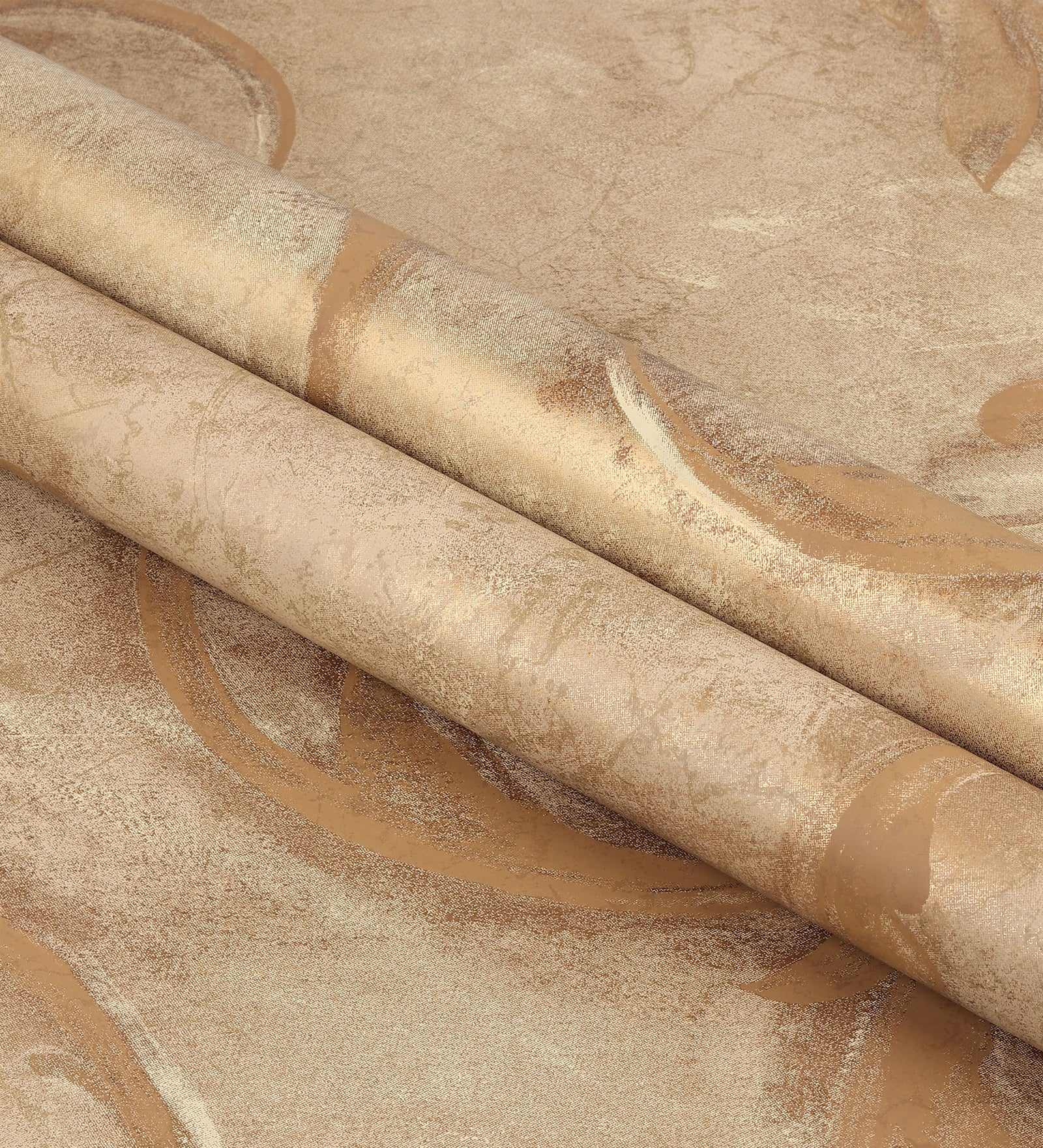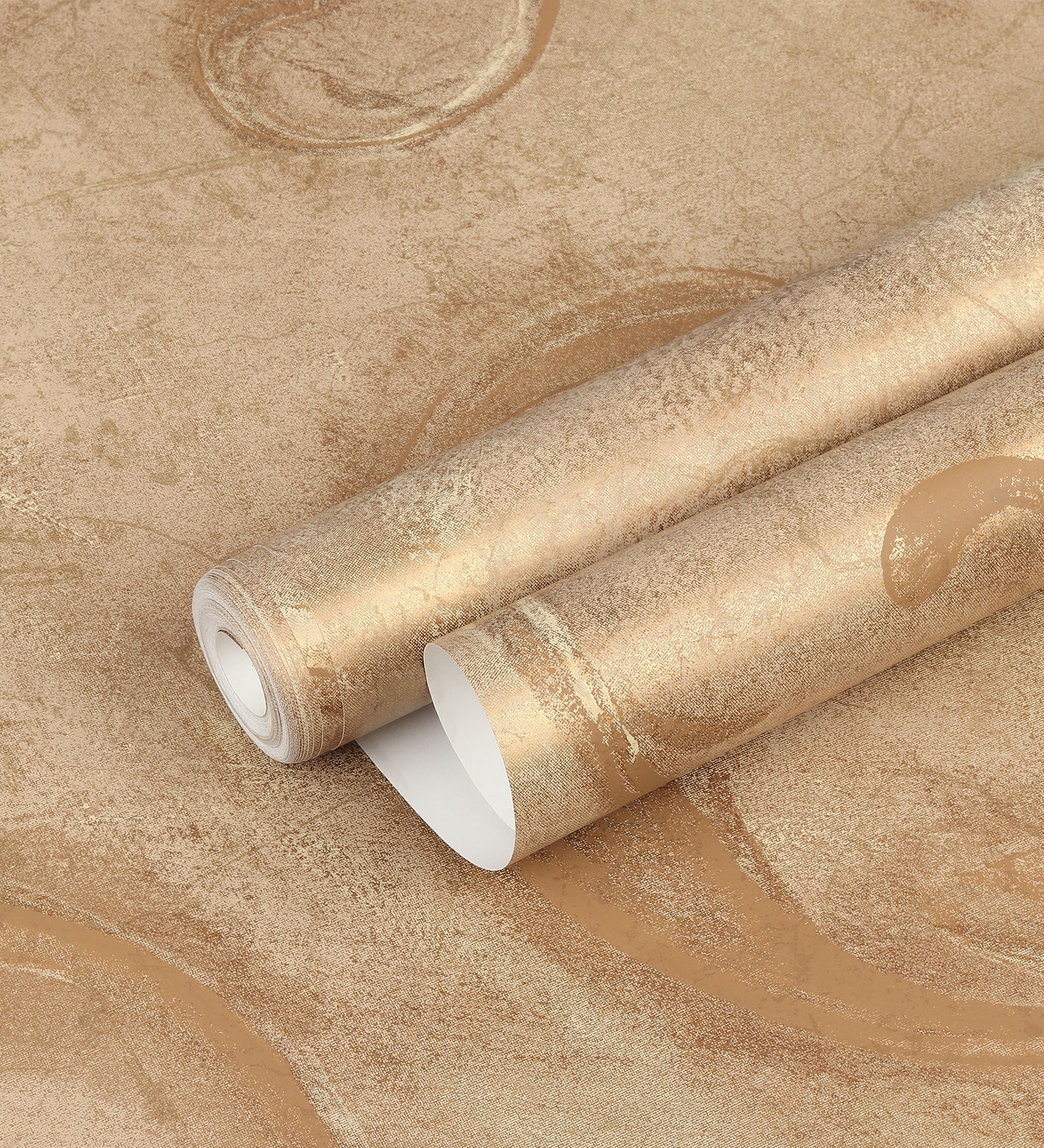 This classic shiny golden wallpaper with slightly smudged florals on a stylistically broken backdrop adds a curiously vintage feeling to your home.