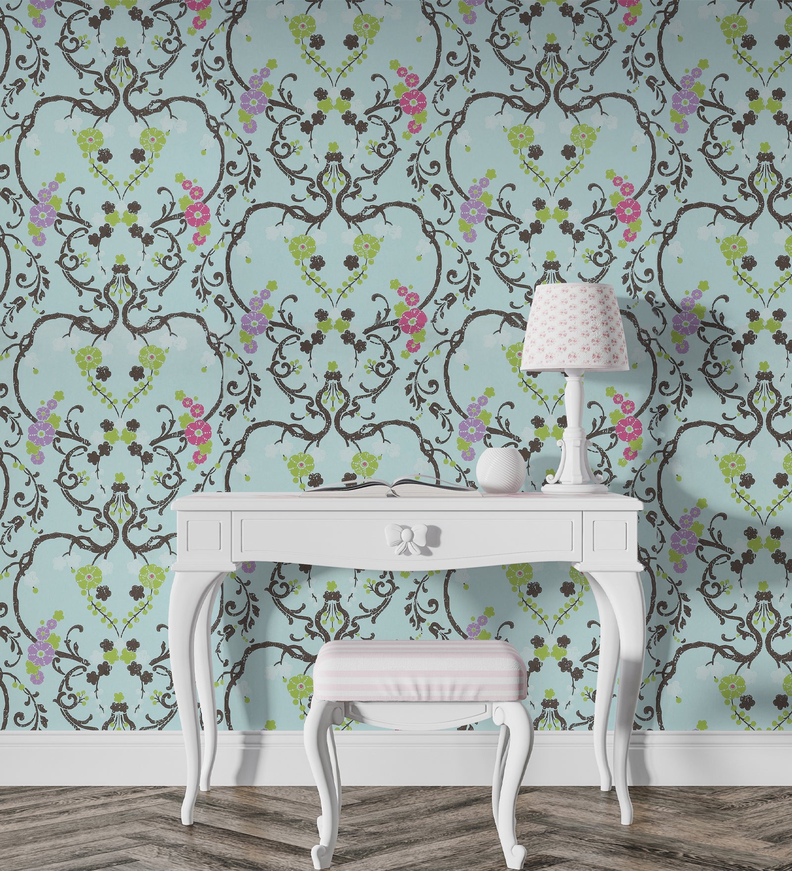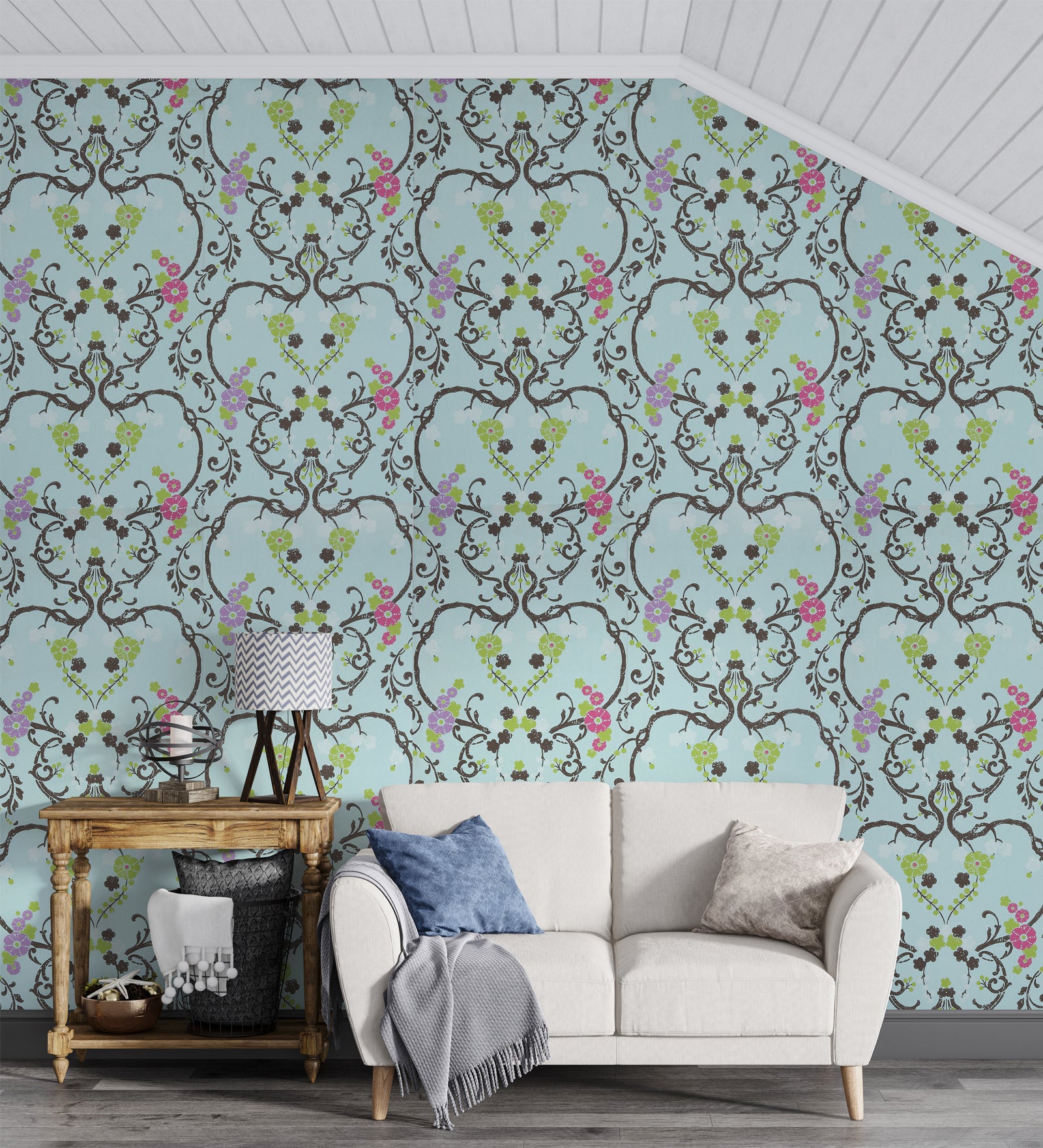 Flamenco Sky Blue Floral Design Wallpaper 320726