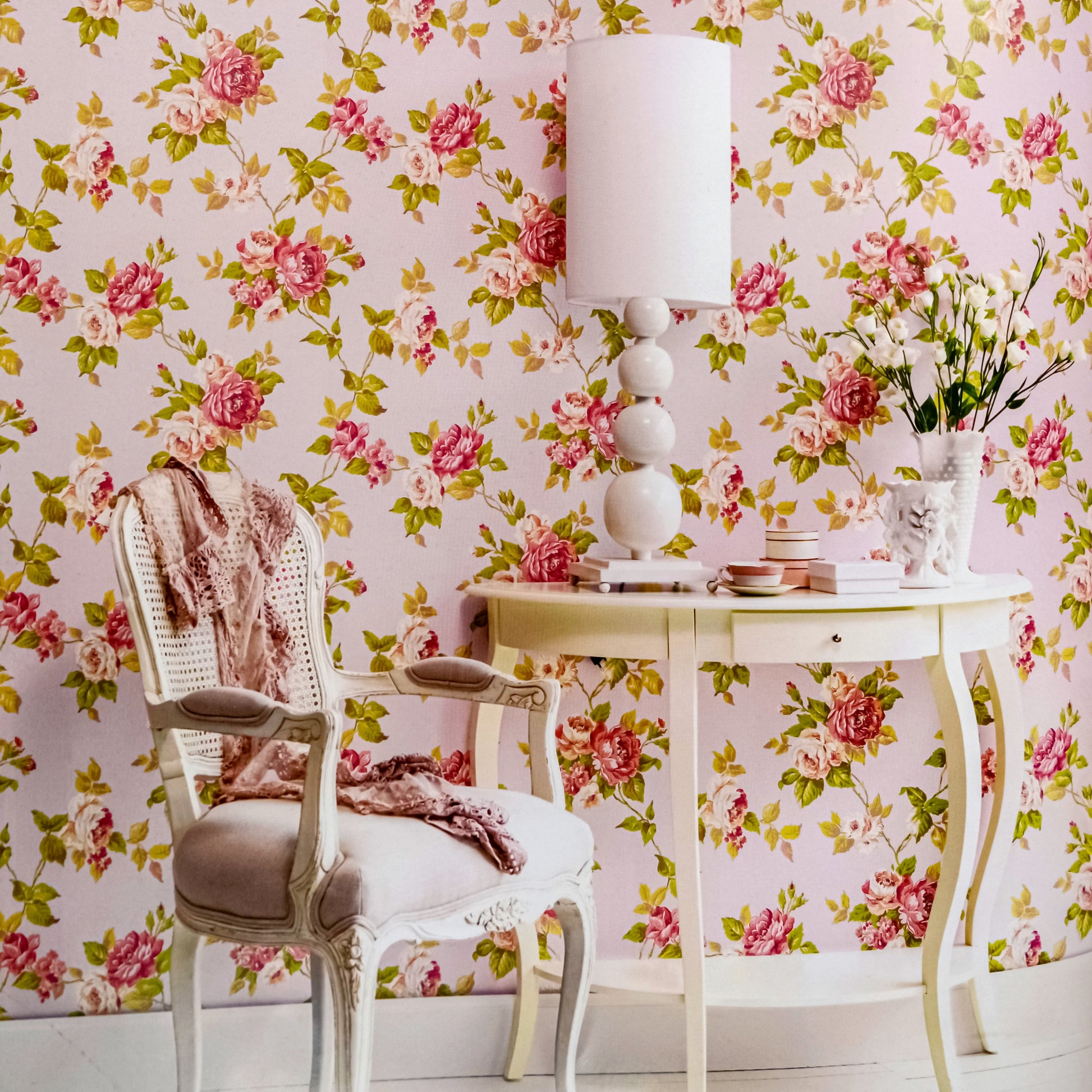Bring a touch of luxury and warmth to your space with this faded pink wallpaper, adorned with beautiful peach and pink flowers. The wallpaper evokes the feeling of a fresh garden, creating a welcoming and refreshing ambiance. Its stunning appearance complements pastel decor and adds beauty to any room, making it an excellent choice for bedrooms, drawing rooms, and kitchens alike.