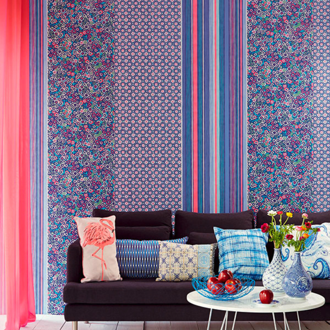 Raval Blue, White & Pink Floral Design Wallpaper 341502