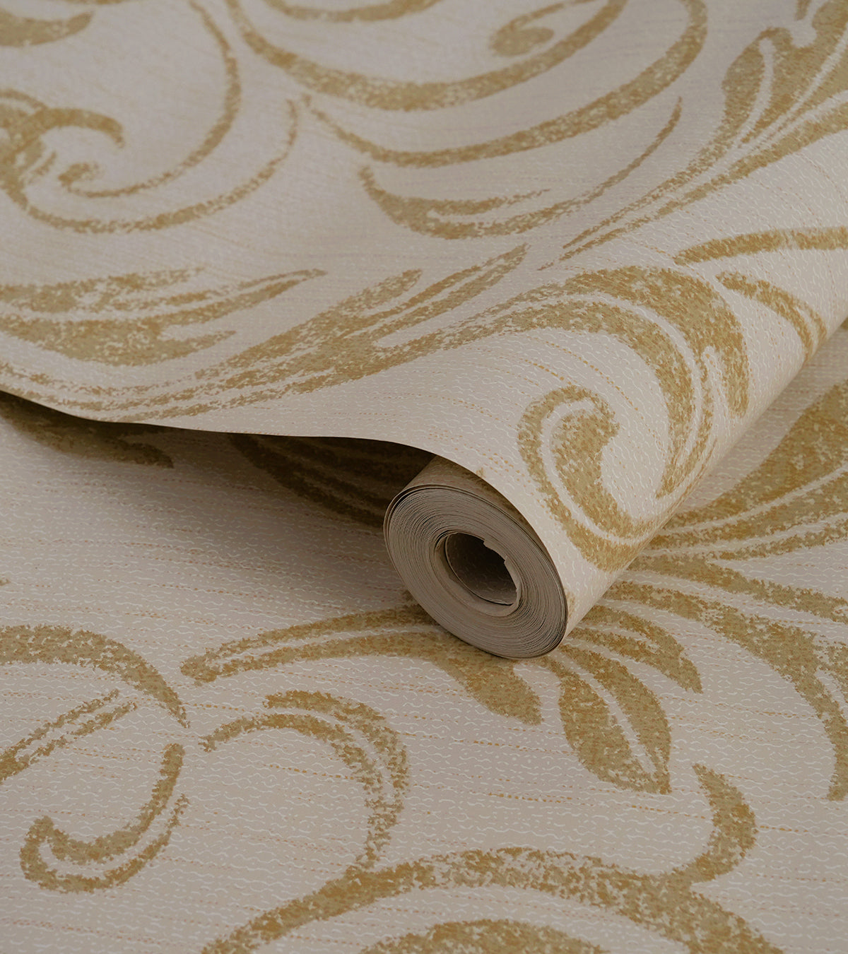 Product Details: An off white almost peach toned smudge mixed with white makes this wallpaper a surprisingly elegant design that pairs well with all bright decor and wooden furnishings. The intricate pattern lends a subtle grace that looks well in place in heavily furnished bedrooms or living areas with a touch of printed fabrics
