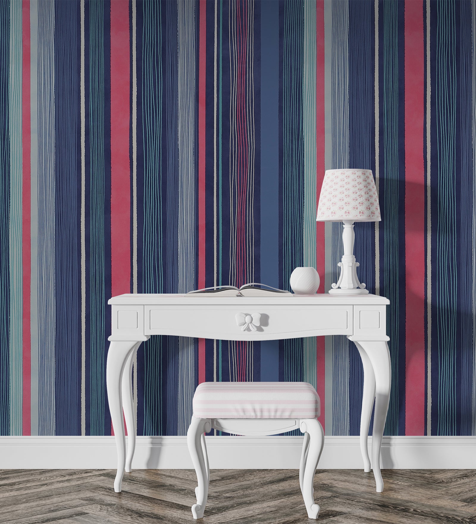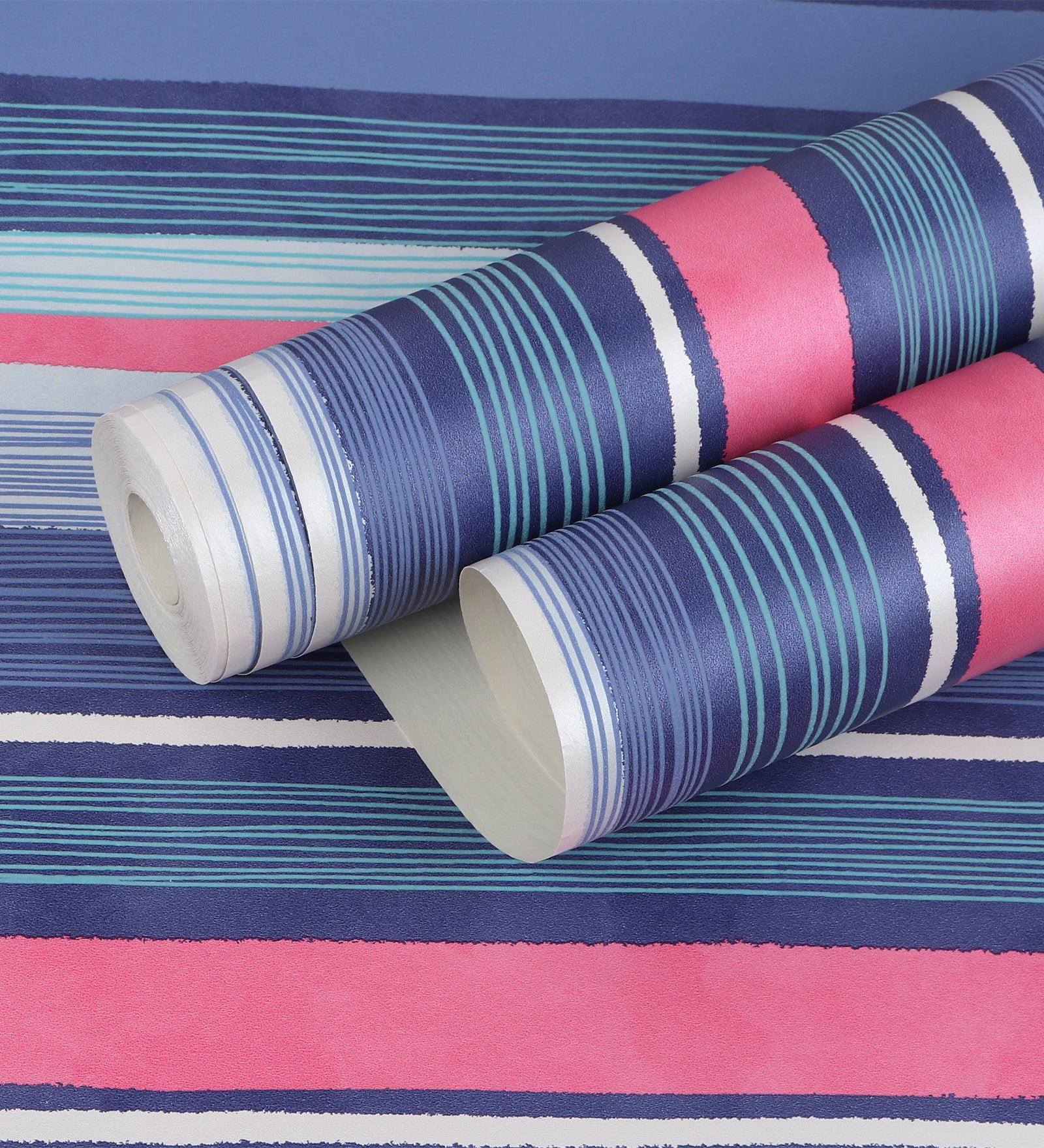 Raval Blue, Pink & White Striped Design Wallpaper 341512