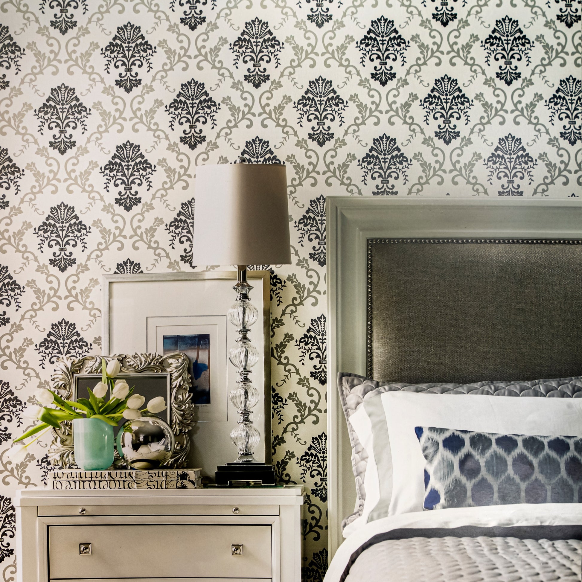 Elevate the ambiance of your living, dining, or bedroom areas with this luxurious white surface wallpaper featuring a faded grey and black baroque motif design. The intricate and artistic details of this wallpaper exude a regal charm, transforming any space into a sophisticated haven. To create a cohesive and refined look, pair it with off-white or golden furniture and complementary furnishings in the same hue. Whether you're looking to create a luxurious atmosphere or simply want to add a touch of elegance, it is a perfect choice for creating a beautiful and stylish home.