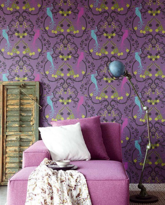 room. The wallpaper and black upholstery will make a stylish pairing.