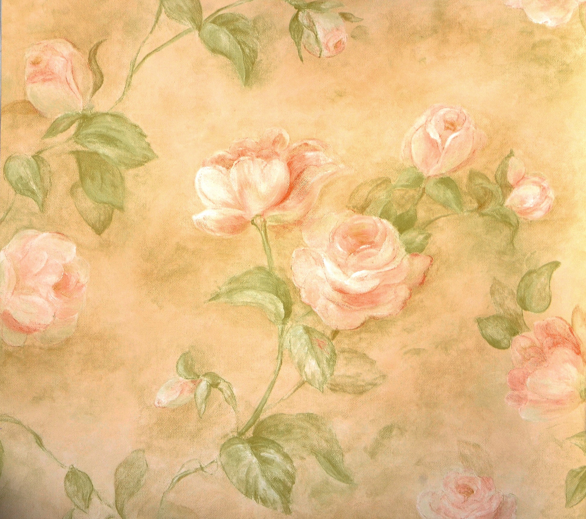 American Classic Pink Brown Roses Natural Print Wallpaper 330872