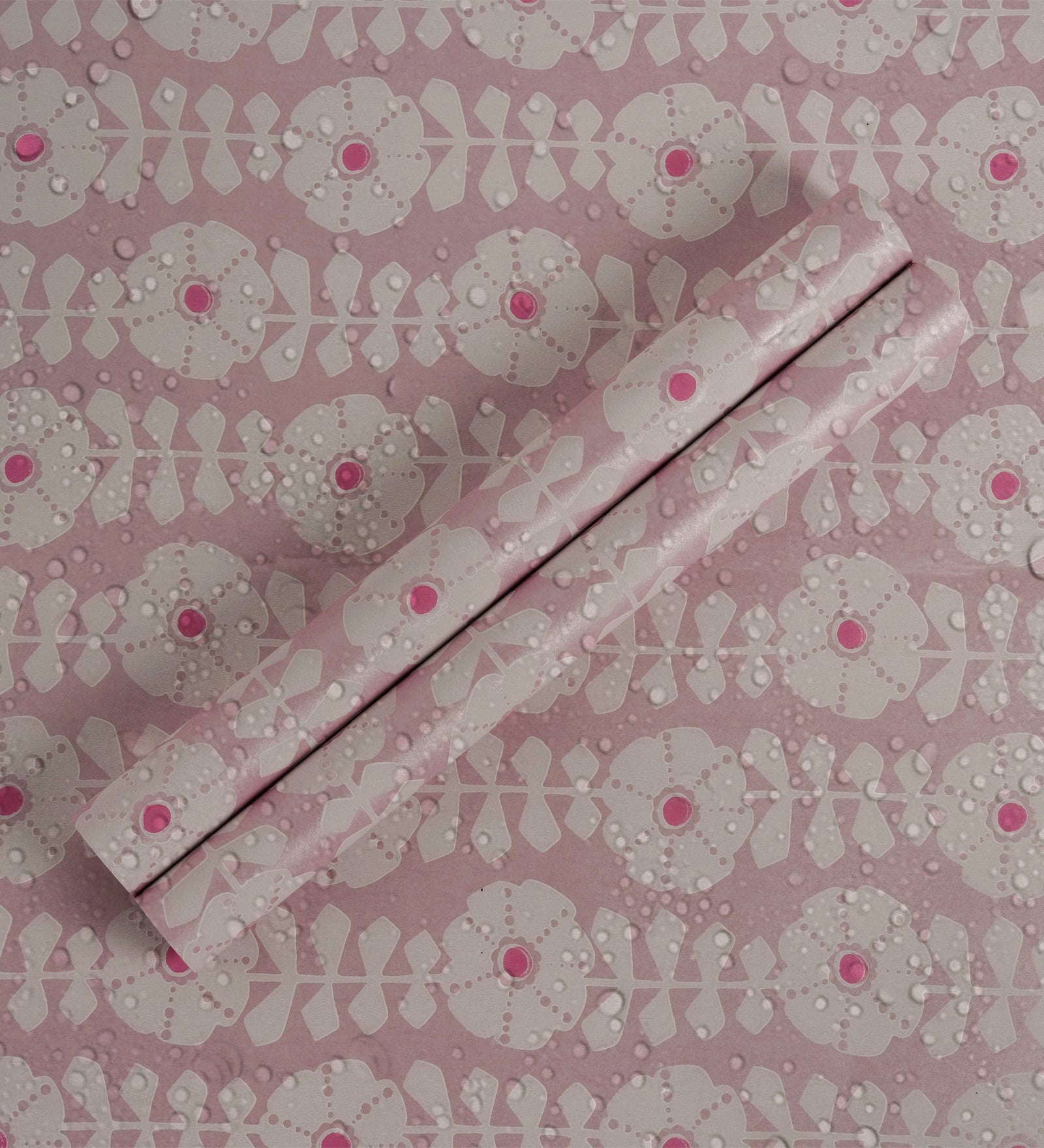 A soft pink wallpaper with a design of floral creepers which seem to grow from your ceiling. This designer wallpaper would best go with fuscia, magenta and wild berry upholstery and solid white furnishings.