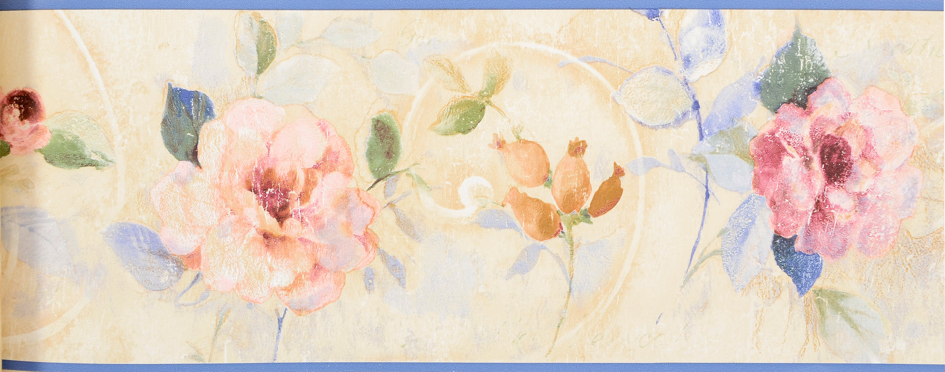 American Classic Pink Blue Roses Brown Swirl Motif Wallpaper 330883