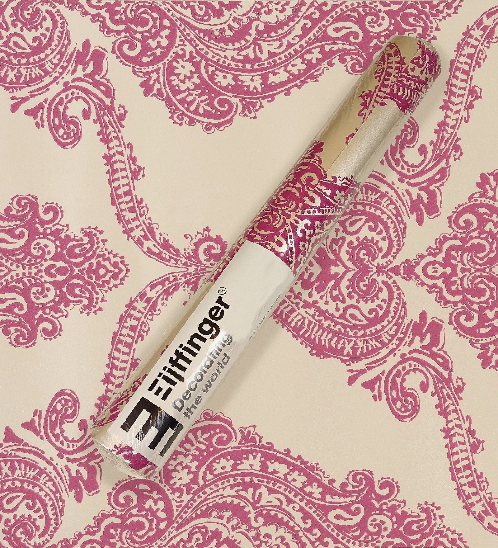 This white base wallpaper with pink floral motifs is a perfect statement wallpaper for a living room, bedroom and kitchen. Its eye-catching depiction gives it a regal yet modern look, which could make any room look more gracious and luxurious. The wallpaper can be paired with bold pink or purple toned furnishings and will set the right mood for all those evening parties.