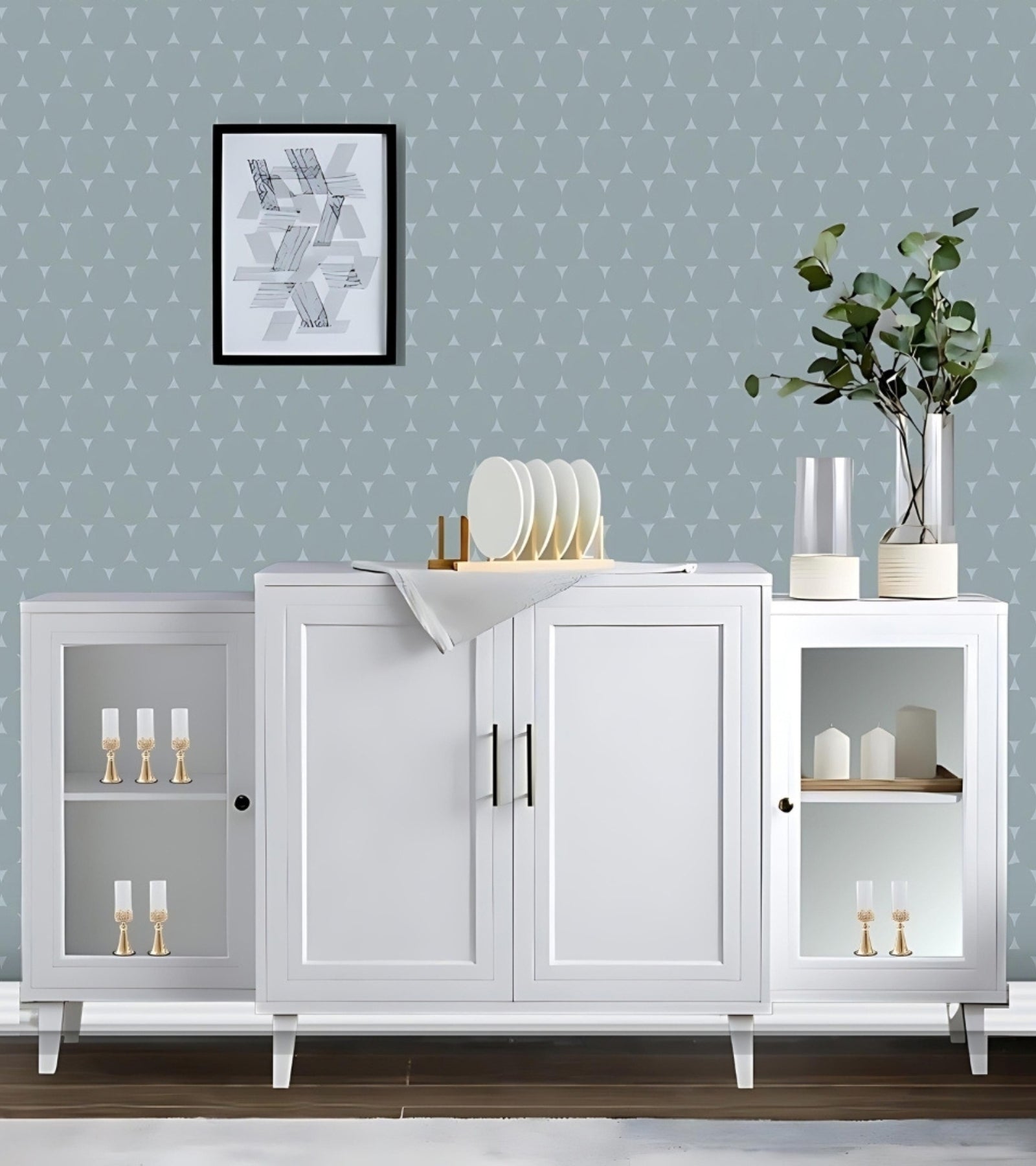 Light blue mod dots on a plain white background make this design a truly distinguished addition to your home. It is particularly well combined with light wood, white or pastel decor and can even be combined with other bolder wallpapers for a stylistic touch in your home, particularly adding to the grace of white and blue color palattes perfect for nurseries, kitchens or bathrooms along with living areas