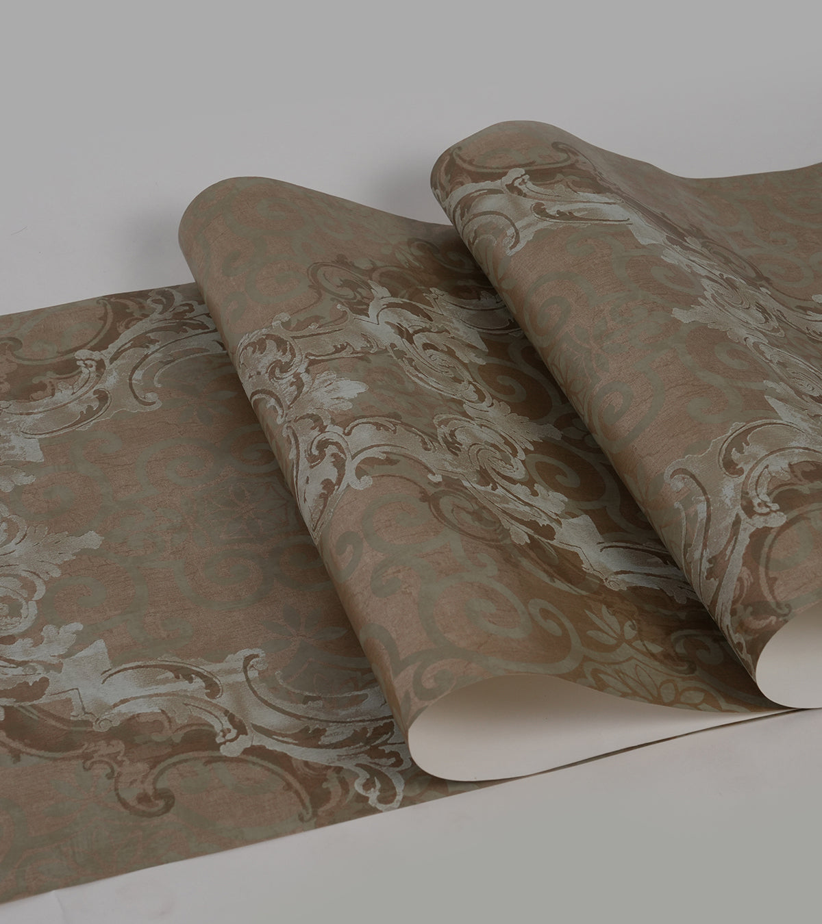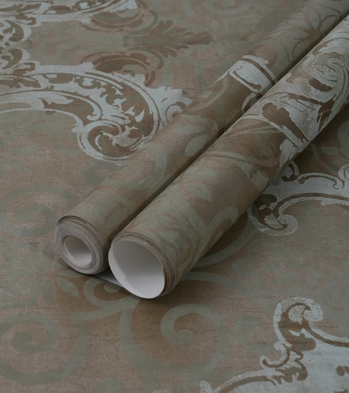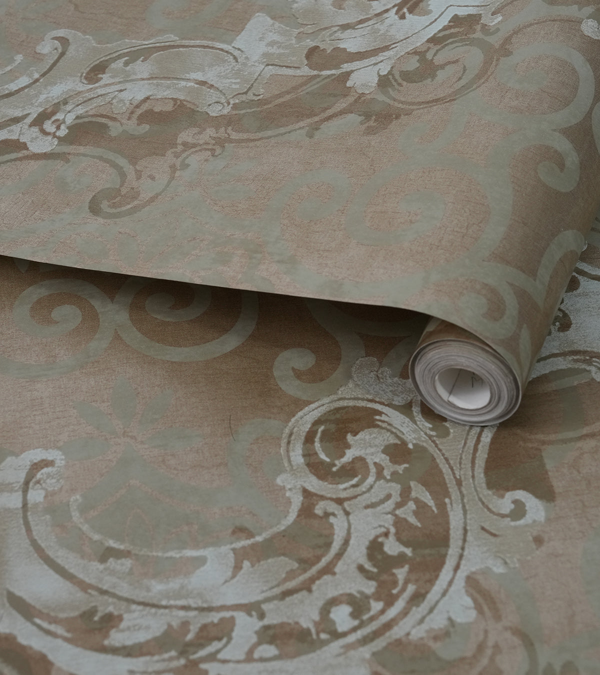 This intricately designed wallpaper with gold and silver flourishes adds a vintage look to your walls, a wonderful addition to loosely decorated rooms with elements that highlight even the softest and subtlest of decor