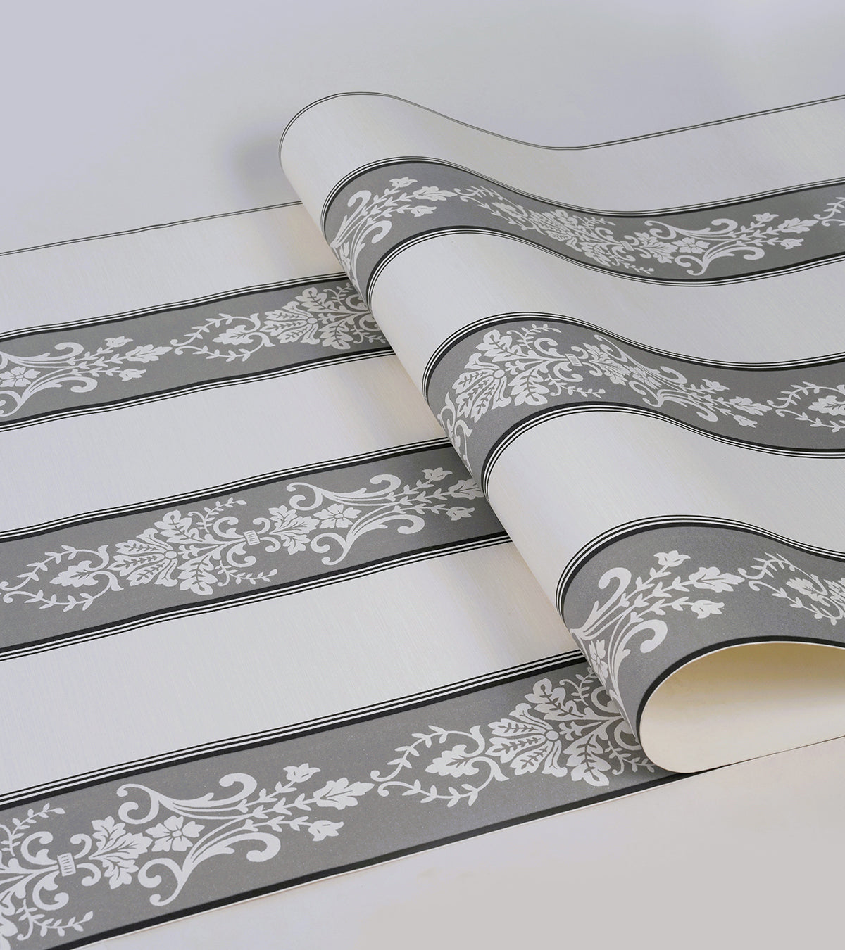 Lyndhurst Grey Striped Alternate Baroque Design Wallpaper 331965